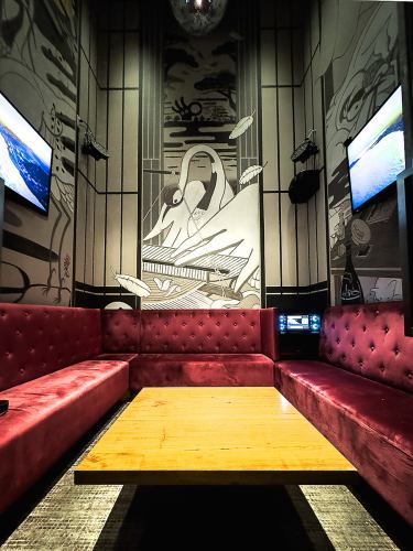 歴史的価値のある名古屋テレビ塔の旧エレベーターシャフトをリノベーションした特別な個室には中央に配置されたミラーボールが煌めき、カラオケ設備も完備。天井まで広がる空間には地元のアーティストによる作品が描かれています。様々なシーンで贅沢な時間をお楽しみください。